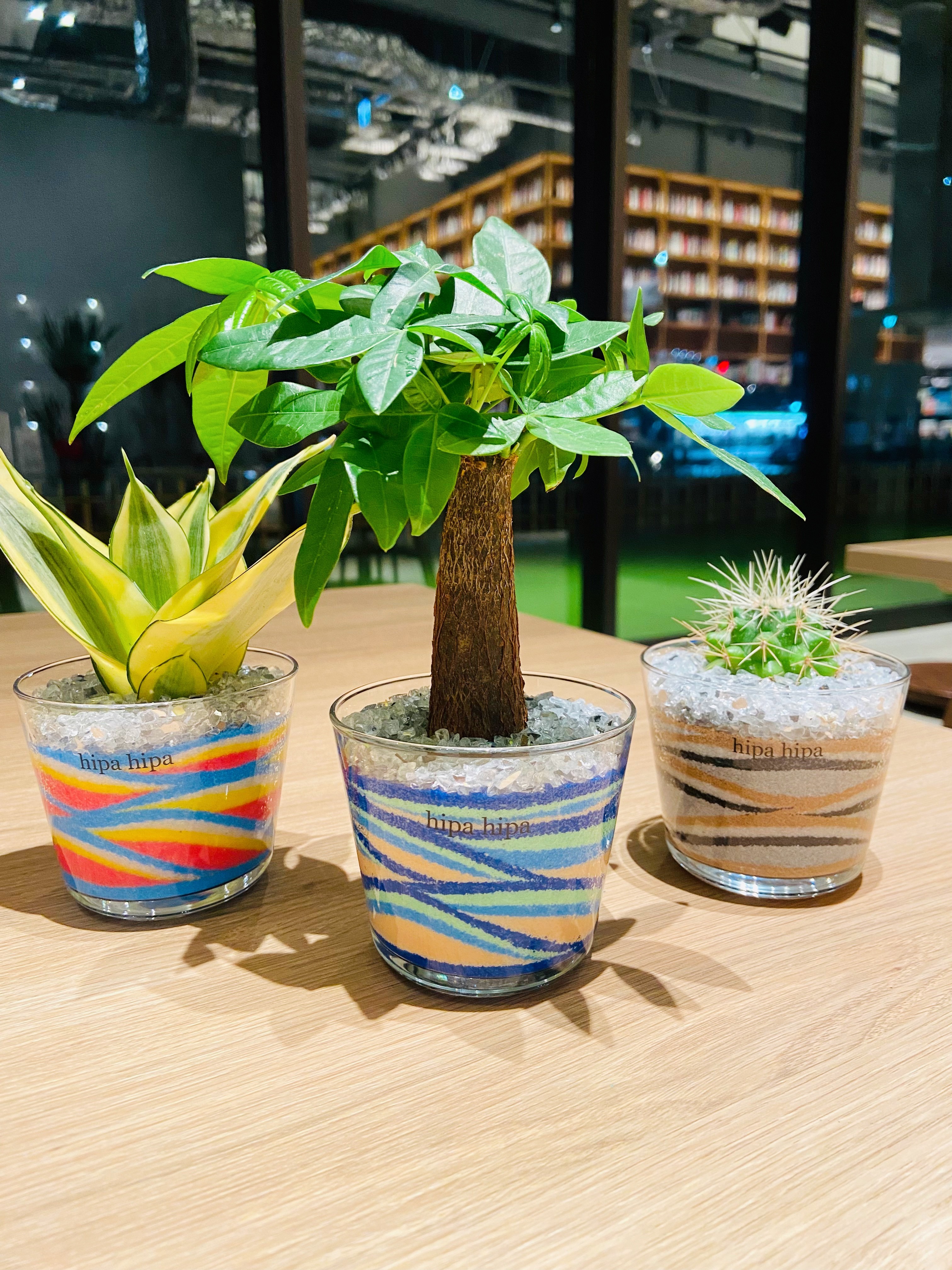 お好きな砂の色を4色と観葉植物を選んでいただきます。