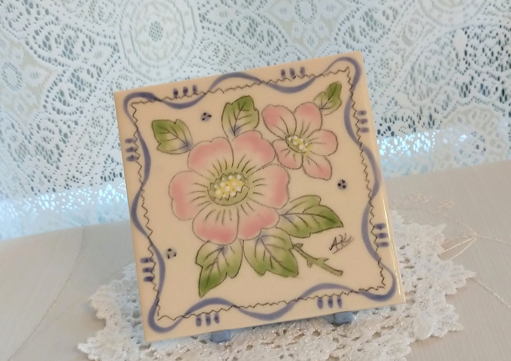 10cm×10cmの素焼きタイルに水性絵の具を使って絵付けを楽しむクラスです。