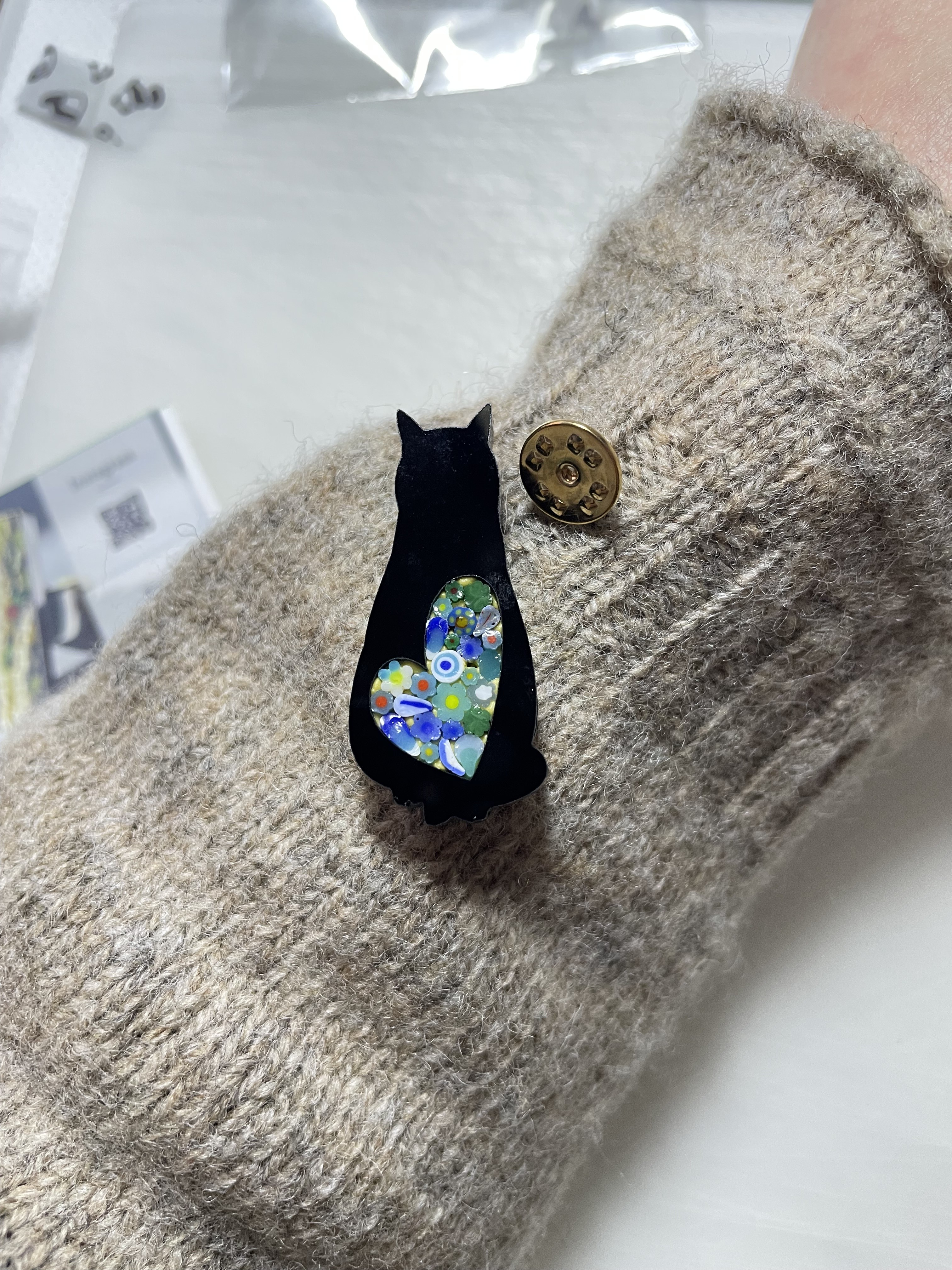 猫の日にちなんで黒猫さんのブローチ作り・・イタリア発祥のミクロモザイク体験