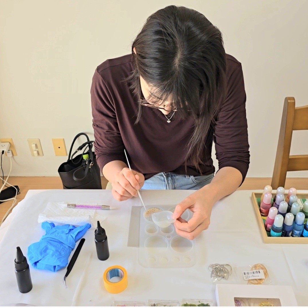 それ以来、アクセサリー制作と海をテーマにしたレジンアート、両方の魅力を日々楽しんでいます。